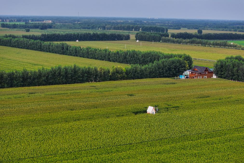 這是正在科爾沁左翼中旗,大面積利用淺埋滴灌手藝的玉米田(無人機照片,2024年8月18日攝)。記者 連振 攝。